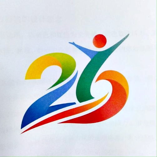 本届运动会会徽以核心数字“26”为创意原点,进行了一场数字与生命的灵动对话。设计将冰冷的阿拉伯数字,升华为一个充满张力、蓄势待发的运动人形,完美诠释了“以人为本,活力无限”的运动会主旨。