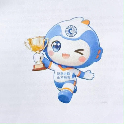 2.色彩与校徽的视觉统一:“辰辰”采用蓝白主色调,与学校校徽及运动会会徽的色彩体系一脉相承,强化了视觉统一性。蓝色象征着纯粹与拼搏,白色云纹装饰既呼应龙的文化属性,又暗喻学子在“新中锐 新目标 新征程”的积极奋进中,如云端腾龙般不断突破自我。