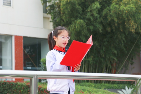 来自五(2)班的王歆茹同学作为学生代表发表国旗下演讲。她说,回首运动会的几天里——在跑道上、在跳高架前、在沙坑中,同学们共同镌刻下热血与感动。这些瞬间,早已超越了胜负本身,成为大家青春里最鲜活的记忆。是每一个人的参与,让这场运动会充满了温度。这份“不放弃、共拼搏”的精神,远比奖牌更珍贵,它会成为同学们未来面对学业以及挑战困难时最有力的底气。