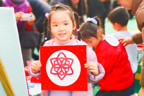 一把小剪刀、一张红纸,宝贝们巧手翻飞,吉祥窗花、喜庆福字跃然纸上,剪出新年好寓意。