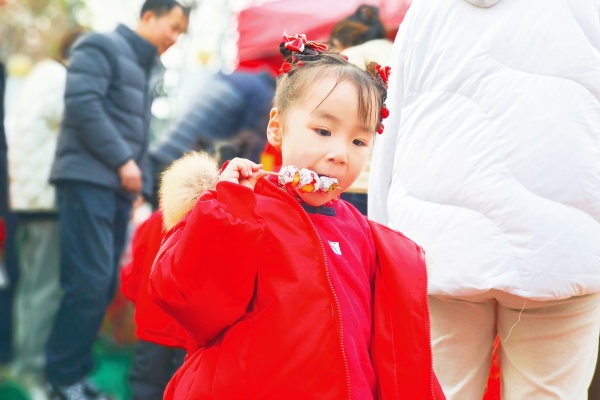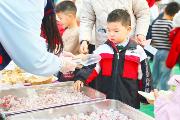 软糯Q弹的奶盖糯米小丸子,一口下去甜到心坎;红彤彤的山楂雪球酸甜开胃,一口咬下满是年味;暖心暖胃的冰糖雪梨清甜滋润,鲜香暖胃的撒汤醇厚浓郁。宝贝们有序排队、细细品尝,把新年的甜甜蜜蜜吃进嘴里,藏在心里。