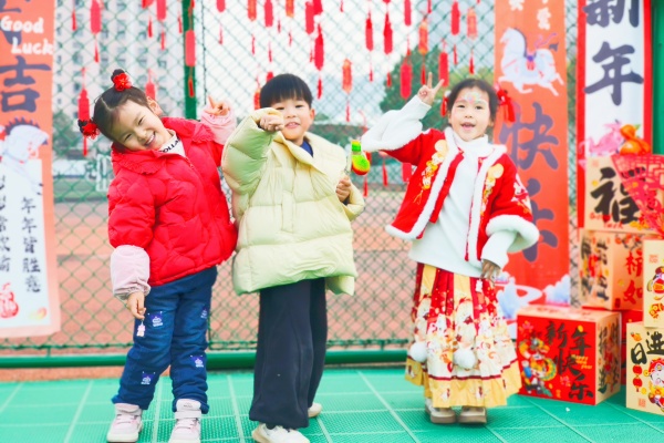 开场集体舞,宝贝们活力满满、笑容灿烂,他们用灵动的身姿点燃全场氛围,瞬间拉满年会热闹的氛围感!喜庆的音乐响起来,新年大集正式启幕——趣味游戏、香甜美食与非遗民俗体验轮番上线,让宝贝们玩得尽兴、吃得香甜、学得充实!