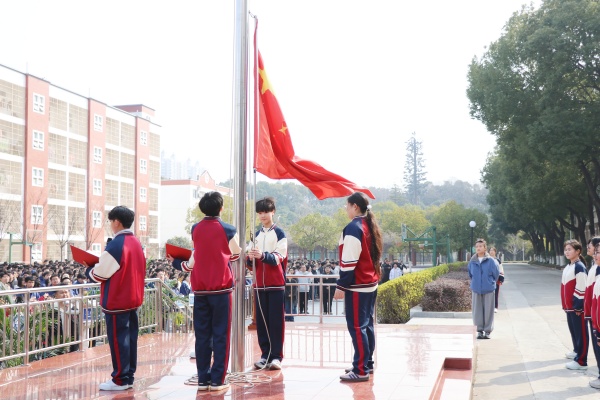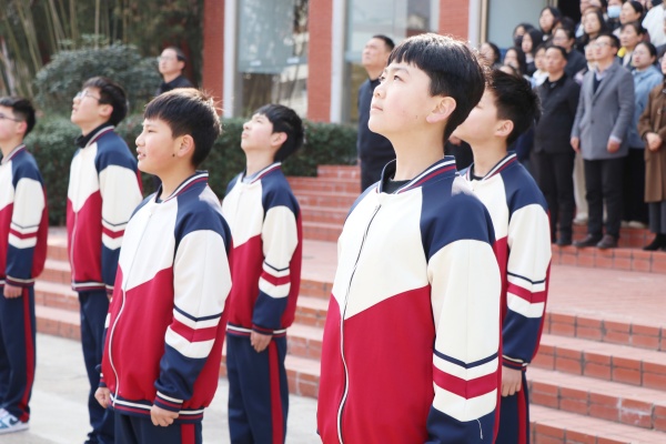 开学典礼在庄严的升旗仪式中拉开序幕。伴随着雄壮激昂的《义勇军进行曲》,全体师生肃立行礼,目光如炬,鲜艳的五星红旗在师生的注目礼中迎风飘扬,冉冉升起。