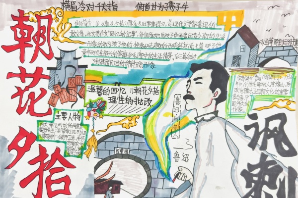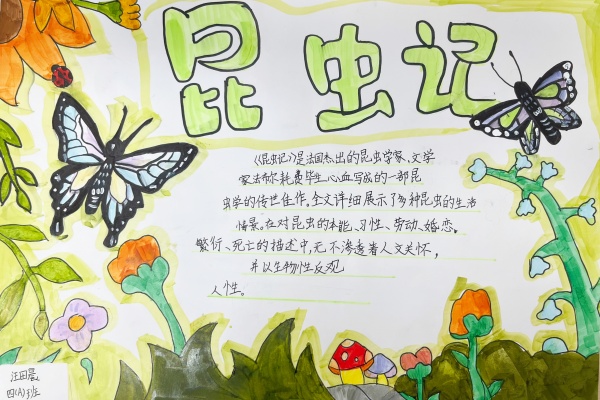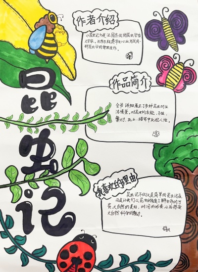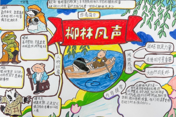 四、五、六年级的同学则以“勾勒思维导图”为主要形式,对整本书进行深度梳理。学生们在老师的精心指导下,从《中国民间故事》《西游记》《鲁滨逊漂流记》《昆虫记》《小兵张嘎》《朝花夕拾》《骆驼祥子》等经典书目中精心选材,潜心阅读,深入思考,并以创意十足的形式呈现阅读所得。在创作过程中,孩子们妙笔生花,巧思纷呈,创作的作品既有对书中人物形象的生动刻画,也有对经典情节的精彩再现。一幅幅作品是孩子们与文字对话的见证,是思想与艺术交融的结晶。每一份作品都凝聚着智慧与匠心,充分展现了同学们缜密的思维能力和深度阅读的成果。