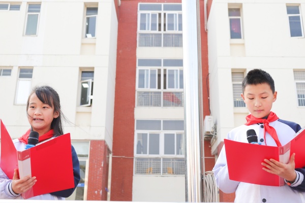 主持人在随后的总结中呼应讲话内容,他们带领全体同学共同承诺:“不闯红灯不猛跑,安全永远第一位!”