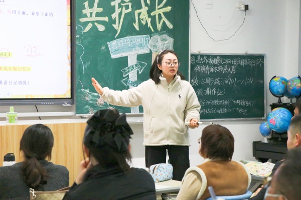 随后,家长们移步至各班级教室,参加由班主任主持的班级家长会。各班教室布置得整洁而温馨,黑板上的欢迎语、墙面上展示的学生作品,无不传递着各班的特色与活力。班主任们围绕班级管理理念、本学期开学以来学生的整体表现等内容,向家长们做了系统汇报。“孩子们已完全适应了初中生活的节奏,他们不仅在学业上人人有目标、个个在进步,在行为习惯、集体意识、心理状态等方面也呈现出积极向上的面貌。”班主任们结合日常点滴,分享了学生在课堂互动、课外活动、同学交往中的成长故事。各科任老师也逐一发言,老师们从学科特点、学习方法、个体关注等角度,与家长进行了细致沟通。交流环节中,家长们敞开心扉,就青春期教育、学习动力提升、心理情绪调节等话题,与老师展开了深入探讨。双方共同分析问题,分享经验,在互动中逐渐凝聚共识:只有家校同心、携手共育,才能更好地为孩子的成长护航。
