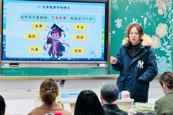 先有父母心 再做教育人窗外暮色渐起,教室内的交流却依然热烈。一次家长会,不仅让家长更清晰地看到孩子成长的足迹,也加深了家校之间的理解与信任。相信在这样和谐共进的教育合力下,七年级的孩子们必将在今后的学习与生活中,步履不停,拾级而上,迎来属于自己的更大进步!