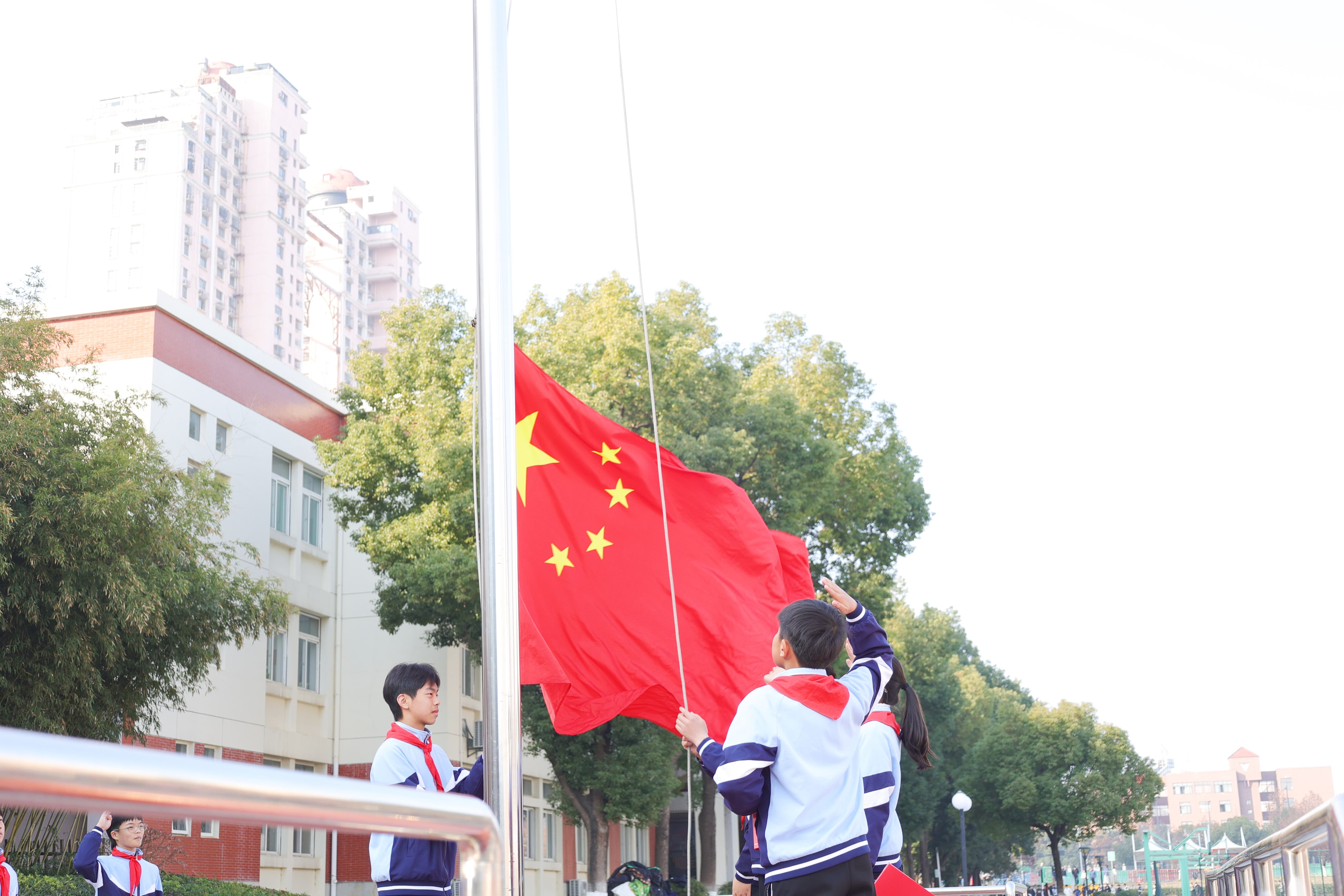 伴随着雄壮的国歌声,全体师生肃立,少先队员敬队礼,师生行注目礼,注视着五星红旗在晨光中冉冉升起,它给予每一名学子光明、希望与永不停歇的前行力量。同学们歌声铿锵,目光坚定,展现了中锐学子昂扬向上的精神风貌。