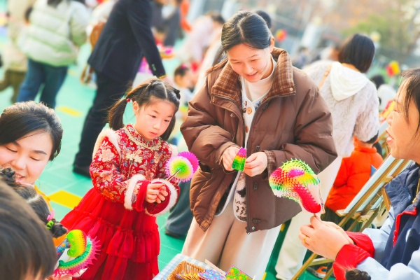 欢乐套“喜”人气爆棚,小朋友们小手稳握套圈,轻轻一抛,套住吉祥,圈住福气,把新年好运收入囊中。