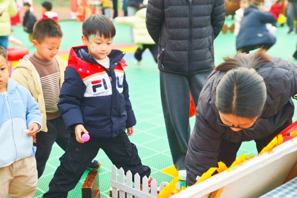 “赶鸡入笼”趣味十足,小小饲养员们耐心引导,把“小鸡”送回家,需专注力与耐心双重“在线”。