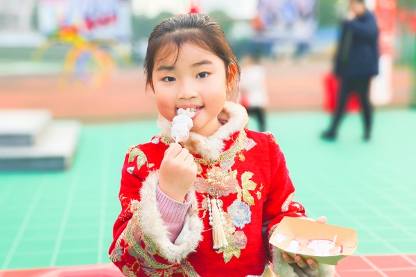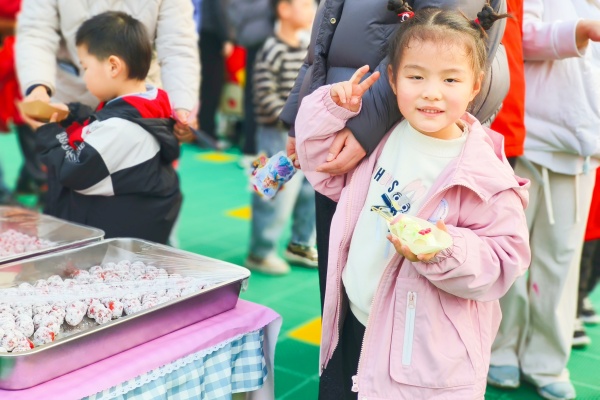 软糯Q弹的奶盖糯米小丸子,一口下去甜到心坎;红彤彤的山楂雪球酸甜开胃,一口咬下满是年味;暖心暖胃的冰糖雪梨清甜滋润,鲜香暖胃的撒汤醇厚浓郁。宝贝们有序排队、细细品尝,把新年的甜甜蜜蜜吃进嘴里,藏在心里。