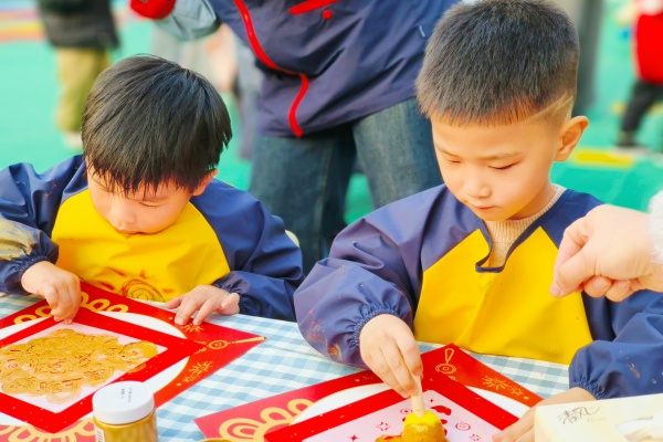 笔墨飘香,宝贝们亲手拓印福字,一笔一画皆是祝福,把满满的福气拓回家,祈愿新年万事顺遂。