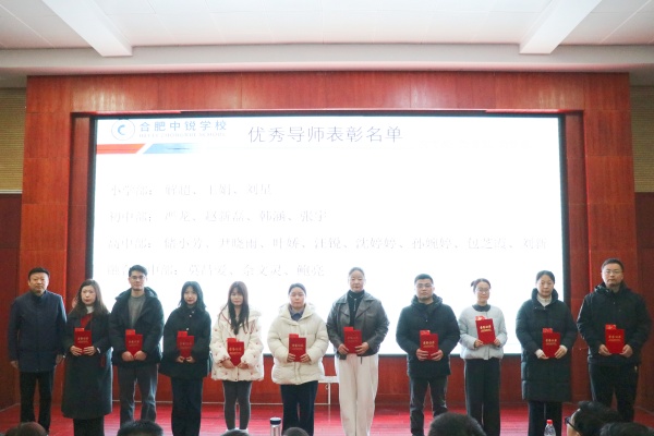 会议首先对上一学期在导师制工作、2026寒假家访工作以及招生宣传工作中表现突出的先进个人进行了表彰。理事长与学校领导依次为优秀教师颁发荣誉证书与奖金。