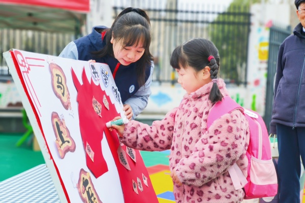 各班级精心准备了新年铲铲铲、夹福进财、小马驾到等特色趣味游戏,萌娃们尽情玩耍,在游戏中收获快乐,解锁新学期好运气!游戏现场热闹非凡,宝贝们勇敢参与、积极互动。