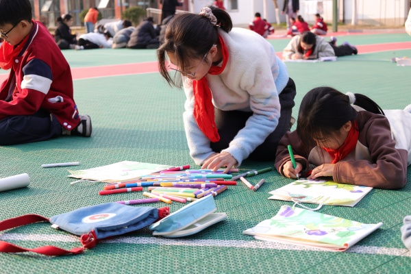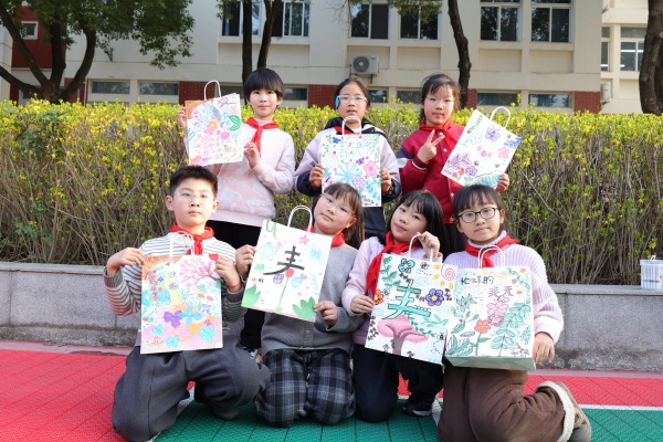 创作过程中,美术老师巡回指导,鼓励孩子们大胆表达自己的想法,现场气氛轻松而热烈。经过一个多小时的精心创作,一个个充满童趣的环保纸袋陆续完成。孩子们将作品拿在手中展示,五彩斑斓的纸袋在微风中轻轻摇曳,形成一道亮丽的风景线。老师们为孩子们的作品定格下一个个美好的瞬间,同学们的脸上洋溢着满满的成就感与喜悦。